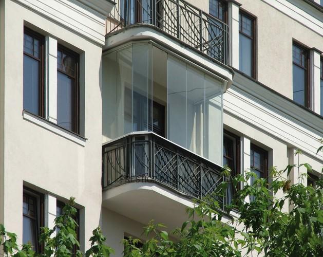 Безрамное остекление балкона с внешней отделкой