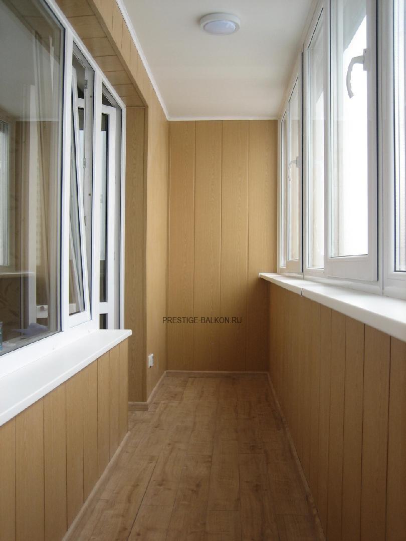 Теплое остекление лоджии и отделка стен и потолка ламинированными панелями в Королеве
