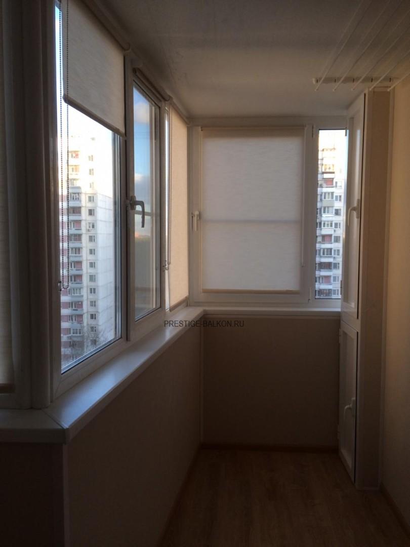 Теплое остекление балкона с утеплением и отделкой ПВХ панелями и ламинатом в Королеве