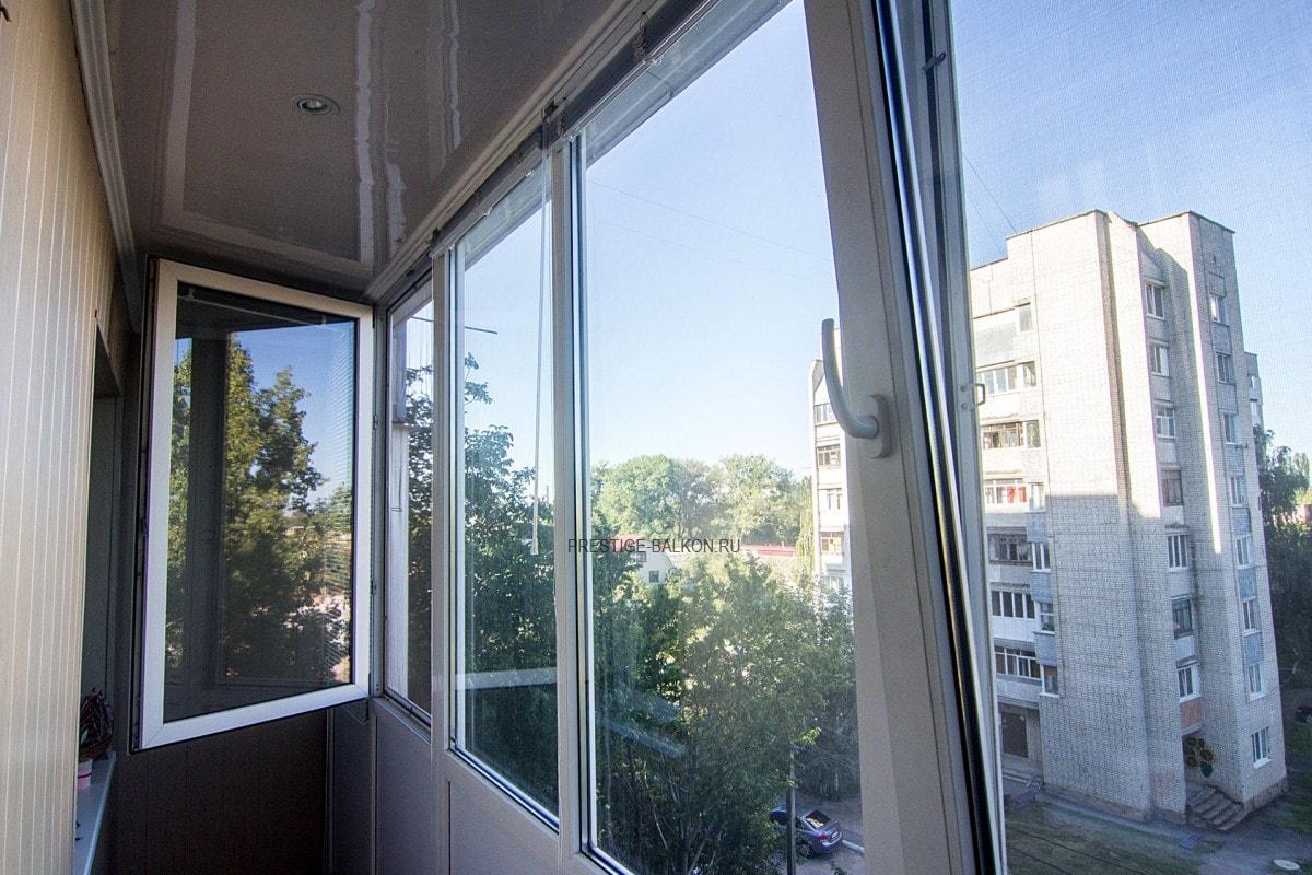 Холодное остекление балкона профилем Provedal с отделкой стен и потолка ламинированными панелями в Королеве