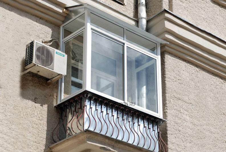 Холодное остекление балкона раздвижными окнами с выносом и крышей