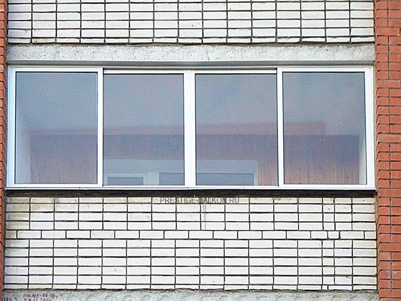 Холодное раздвижное остекление алюминиевыми окнами с подоконником в Королеве